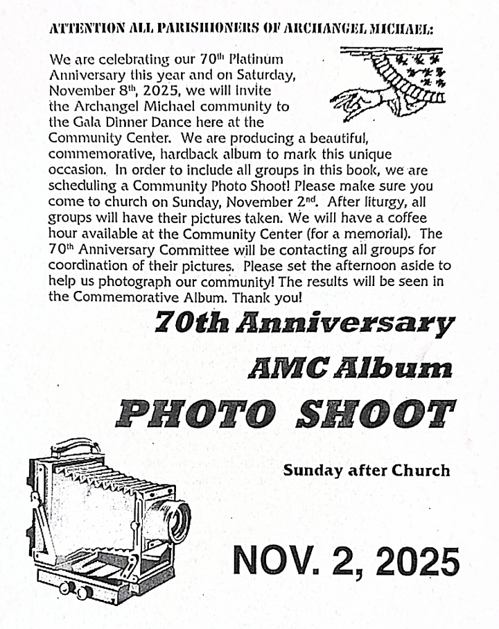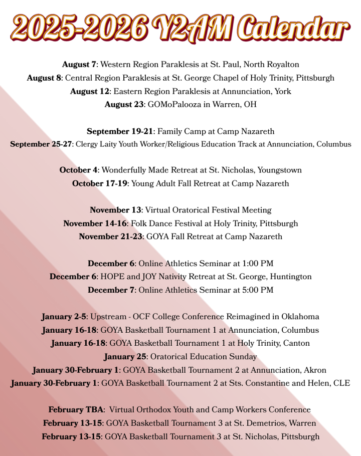 For information on our seasonal liturgical services please contact the Church office at 330-755-3596 between the hours of 9:00 AM - 3:00 PM, Monday through Thursday. If you call outside of office hours, just press 4 to hear the calendar of services.